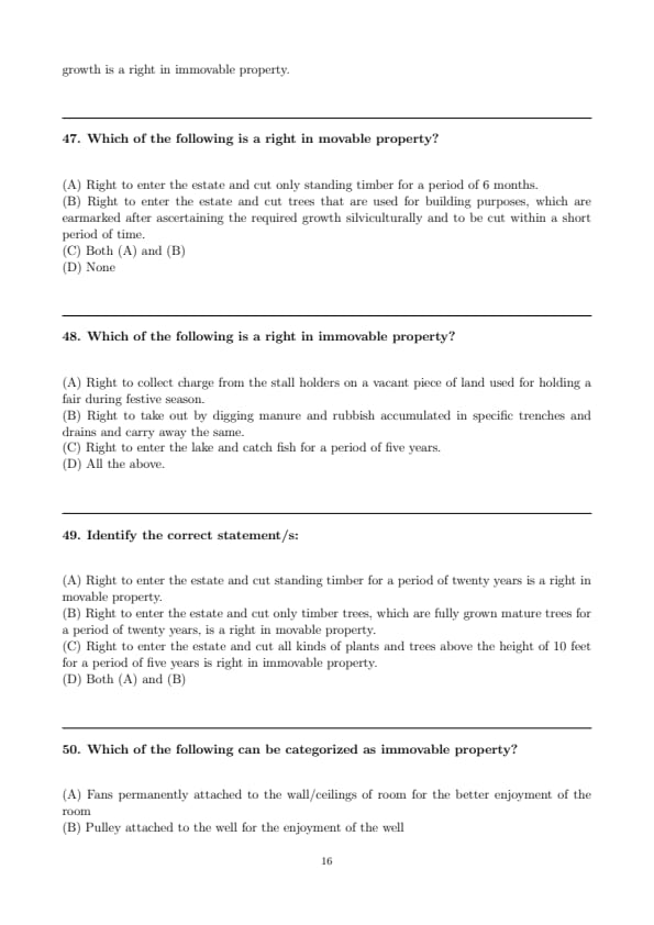 (D) All the above: Correct. All the described rights relate to immovable property, as they are associated with land, water bodies, and land-based activities.