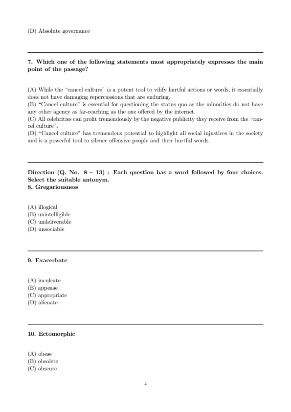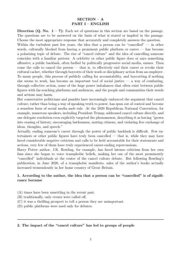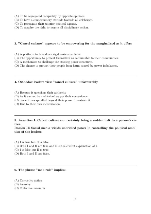 - (D) To acquire the right to negate all disciplinary action: This is not the primary consequence of cancel culture. The focus is more on public rejection rather than the negation of disciplinary actions.