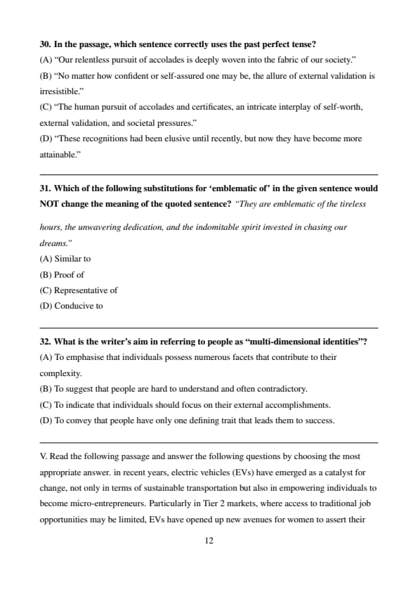The correct answer is (D) because the sentence "These recognitions had been elusive until recently, but now they have become more attainable" uses the past perfect tense ("had been"). This tense is used to describe an action that was completed before another point in the past. Quick Tip: The past perfect tense is formed using "had" followed by the past participle. It is used to indicate an action that occurred before another past event or time.