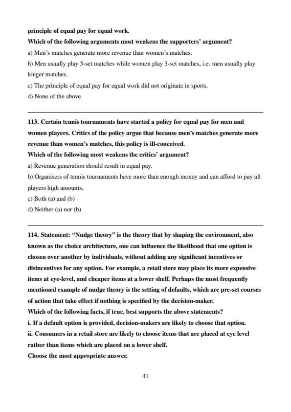 Certain tennis tournaments have started a policy for equal pay for men and women players. Critics of the policy argue that because men’s matches generate more revenue than women’s matches, this policy is ill-conceived.