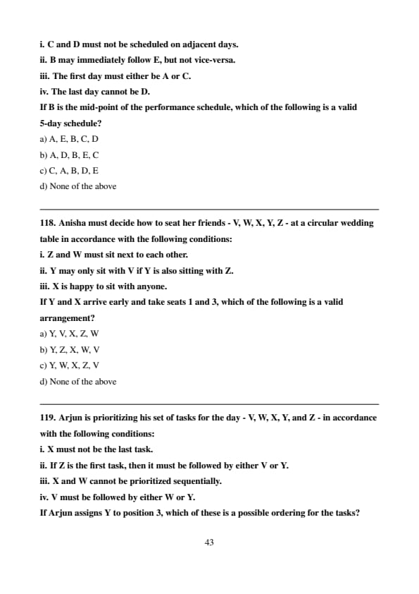 Arjun is prioritizing his set of tasks for the day - V, W, X, Y, and Z - in accordance with the following conditions: