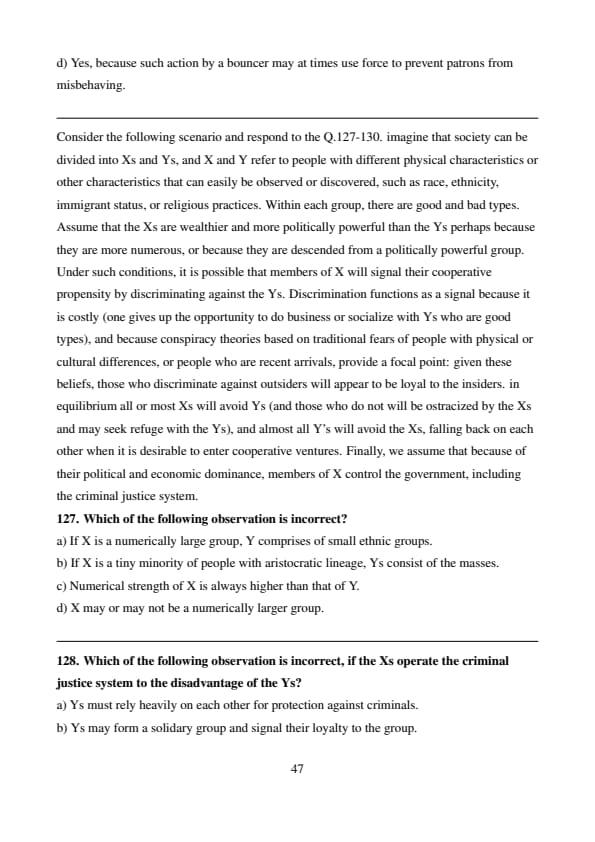 Which of the following observation is incorrect, if the Xs operate the criminal justice system to the disadvantage of the Ys?