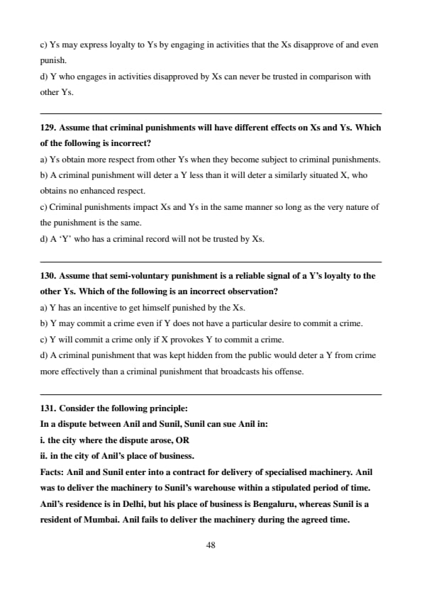 Assume that criminal punishments will have different effects on Xs and Ys. Which of the following is incorrect?