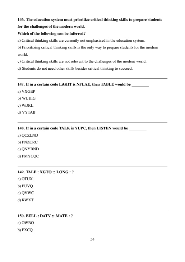 If in a certain code LiGHT is NFLAE, then TABLE would be _________
