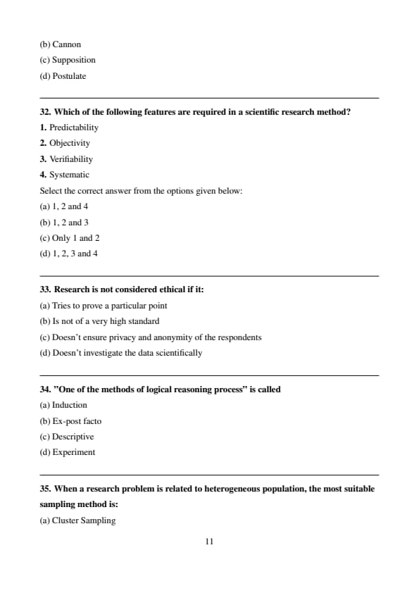 Conclusion: Option (c) aligns with the inductive, exploratory nature of qualitative research. Quick Tip: Qualitative research emphasizes depth over breadth. It often uses open-ended inquiry, non-probability sampling, and inductive reasoning to build theory from observed data.
