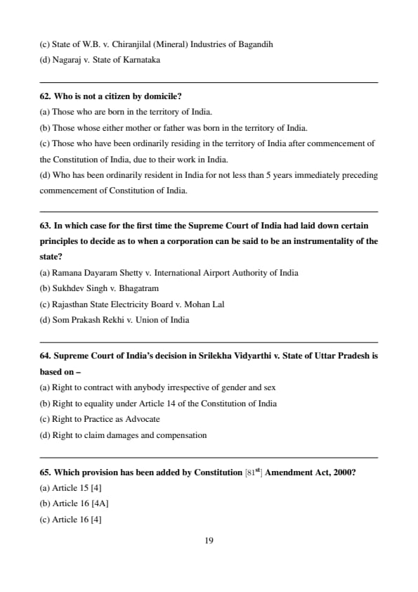 Conclusion: Option (d) is correct — the \(105^{th}\) Constitutional Amendment Act restored the states’ power to identify OBCs. Quick Tip: The \(105^{th}\) Amendment reaffirmed federalism by allowing states to maintain their own OBC lists.