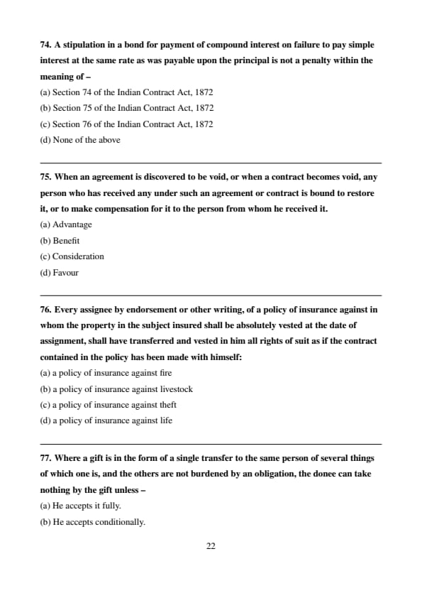 Conclusion: Option (a) is correct — the person acquires a contingent interest under Section 21. Quick Tip: Contingent interests depend on uncertain future events — they are not vested until the condition is fulfilled.