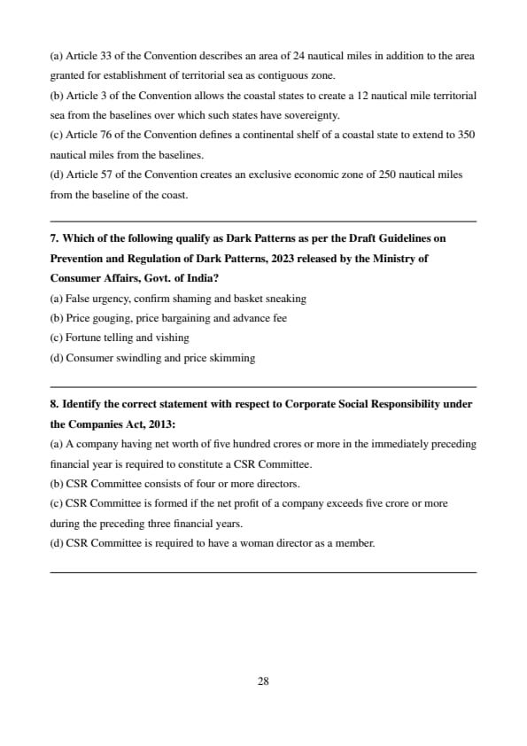 Step 5: Therefore, only statement (b) is entirely correct. Quick Tip: UNCLOS defines maritime zones precisely: Territorial Sea (12 NM), Contiguous Zone (24 NM), EEZ (200 NM), and Continental Shelf (up to 350 NM in special cases). Always check the article number and distance limits.