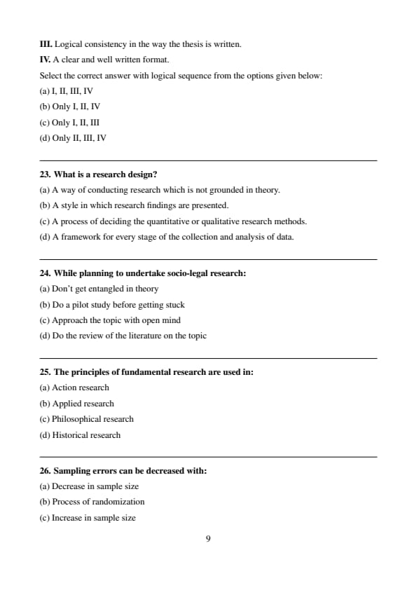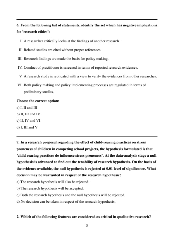 - Statement VI: Regulating policy based on preliminary studies may be risky, but not inherently unethical if done transparently. Quick Tip: Ethical research demands proper citation, validated application of findings, and fair use of evidence. Misuse or misrepresentation of research undermines credibility and trust.