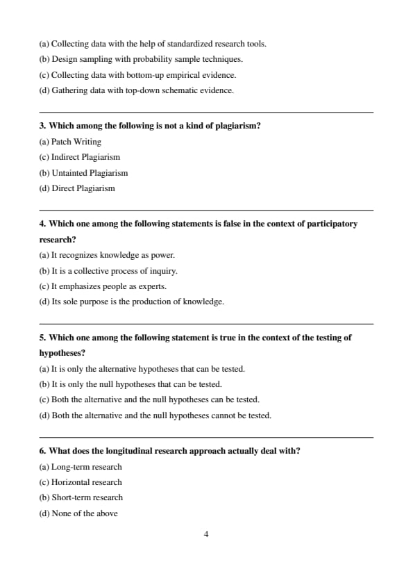 Conclusion: Option (d) is false because participatory research is not solely about producing knowledge—it is also about transforming realities. Quick Tip: Participatory research blends inquiry with action. It values collaboration, local knowledge, and aims to empower communities through shared learning and change.