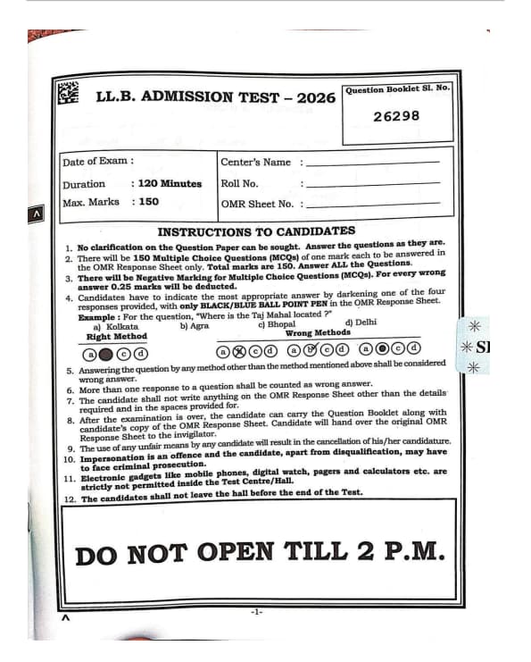 AILET 2026 LLB Question Paper with Answer Key PDF is available for download. NLU Delhi has conducted AILET 2026 on December 14, 2025. The AILET 2026 question paper comprises a total of 150 questions divided among three sections.