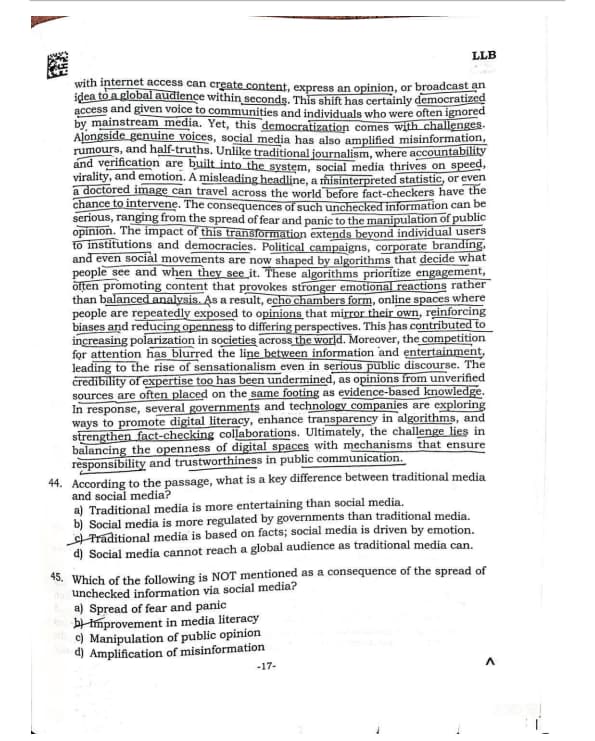 The advent of social media has dramatically transformed the way individuals consume and share information. In earlier times, people largely depended on newspapers, radio, or television as their primary sources of knowledge about the world. These were institutions that followed established editorial practices and fact-checking processes. With the rise of digital platforms, however, the traditional "gatekeepers" of information have been bypassed. Today, anyone with internet access can create content, express an opinion, or broadcast an idea to a global audience within seconds. This shift has created more democratized access and given voice to communities and individuals who were often ignored by mainstream media. Yet, this democratization comes with challenges. Alongside genuine voices, social media has also amplified misinformation, rumors, and half-truths. Unlike traditional journalism, where accountability and verification are built into the system, social media thrives on speed, virality, and emotion. A misleading headline, a misinterpreted statistic, or even a doctored image can travel across the world before fact-checkers have the chance to intervene. The consequences of such unchecked information can be serious, ranging from the spread of fear and panic to the manipulation of public opinion. The impact of this transformation extends beyond individual users to institutions and democracies. Political campaigns, corporate branding, and even social movements are now shaped by algorithms that decide what people see and when they see it. These algorithms prioritize engagement, often promoting content that provokes stronger emotional reactions rather than balanced analysis. As a result, echo chambers form, online spaces where people are repeatedly exposed to opinions that mirror their own, reinforcing biases and reducing opportunities to differ perspectives. This has contributed to increasing polarization in societies across the world. Moreover, the competition for attention has blurred the line between information and entertainment, leading to the rise of sensationalism even in serious public discourse. The credibility of expertise too has been undermined, as opinions from unverified sources are given equal place on the same footing as evidence-based knowledge.