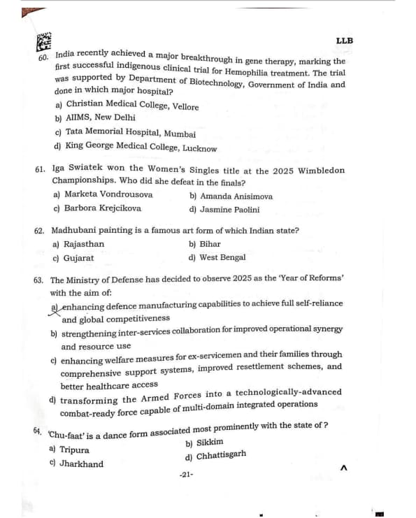 | AILET 2026 LLB Question Paper with Answer Key PDF | Download | Check Solution |