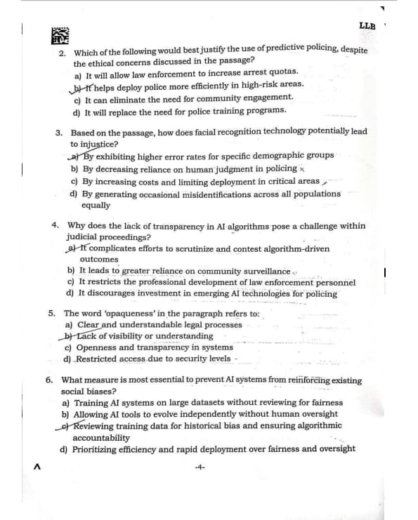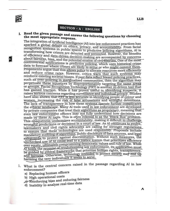 1. What is the central concern raised in the passage regarding AI in law enforcement?