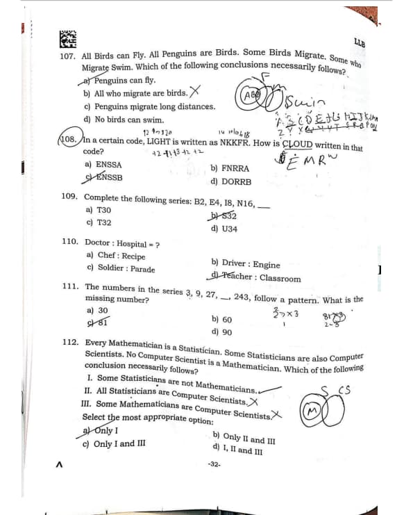 All Birds can Fly. All Penguins are Birds. Some Birds Migrate. Some who Migrate Swim. Which of the following conclusions necessarily follows? \