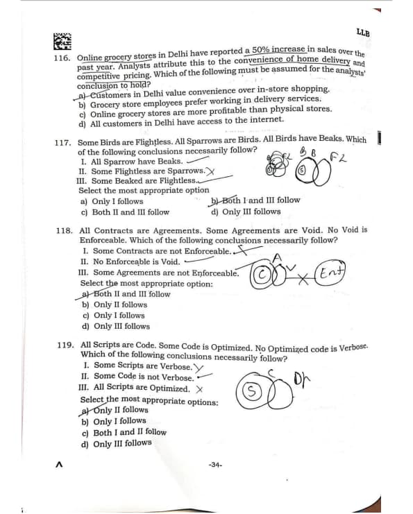 All Scripts are Code. Some Code is Optimized. No Optimized Code is Verbose. Which of the following conclusions necessarily follow? \