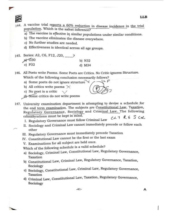 University examination department is attempting to devise a schedule for the end-term examination. The subjects are Constitutional Law, Taxation, Regulatory Governance, Sociology, and Criminal Law. Considerations: \