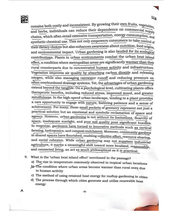 (d) Gaining emotional and psychological well-being through small-scale gardening.