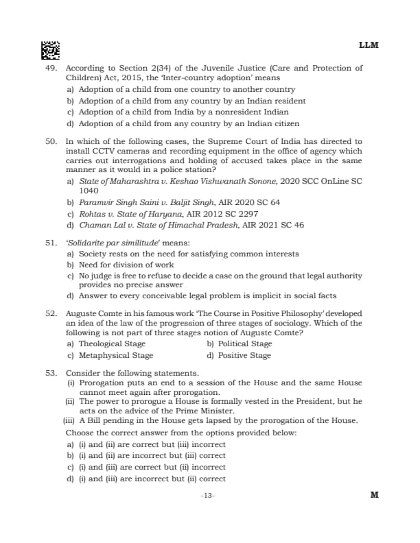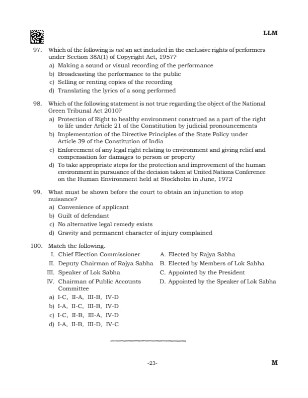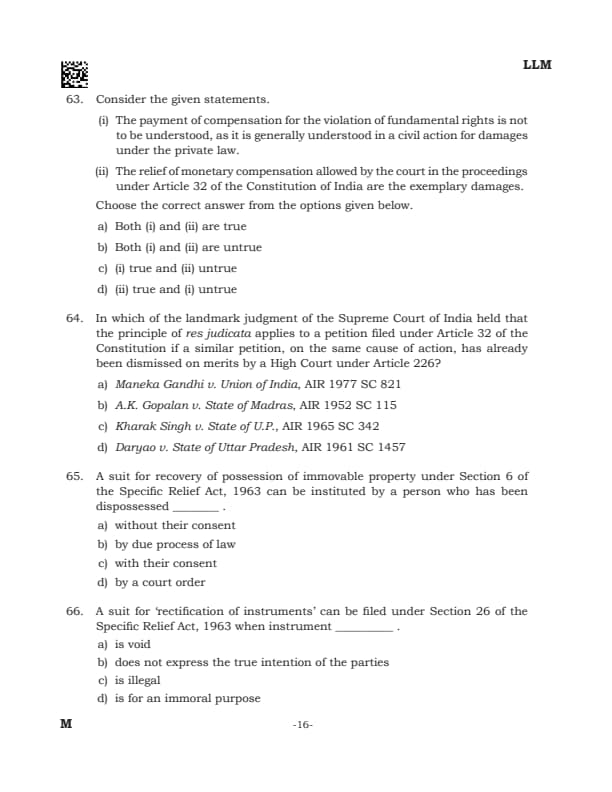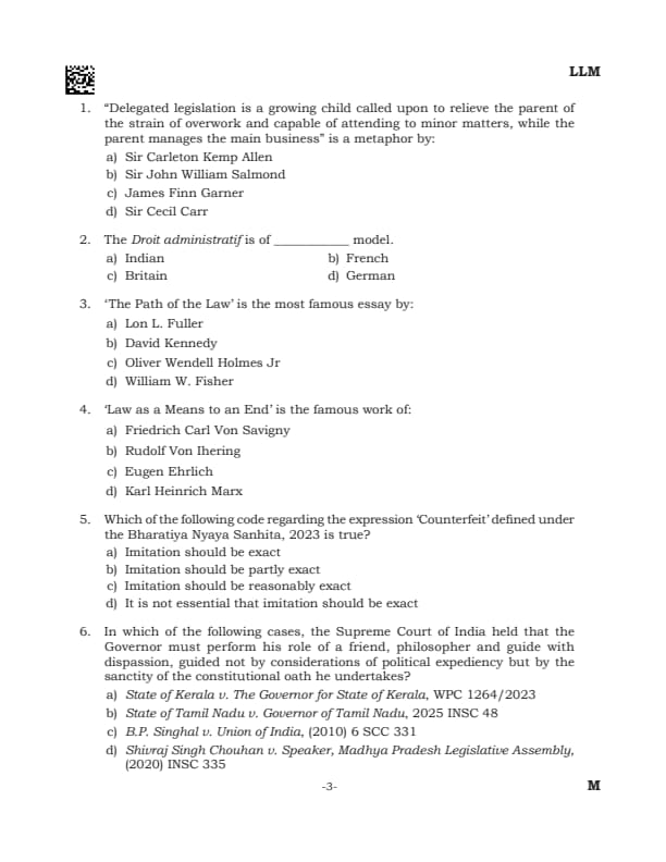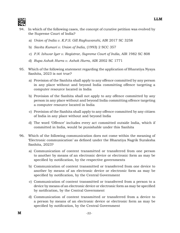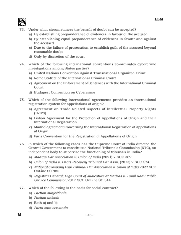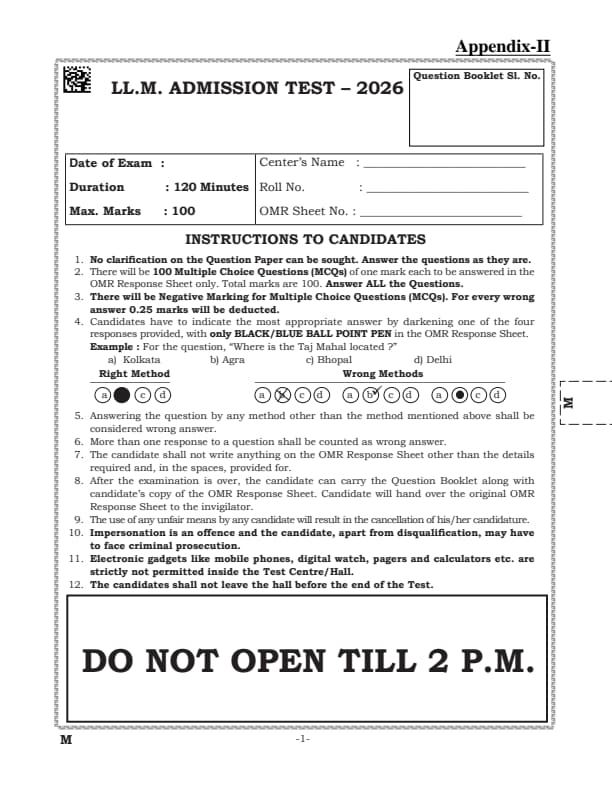 AILET 2026 LLM Question Paper with Answer Key PDF is available for download. NLU Delhi has conducted AILET 2026 on December 14, 2025. The question paper comprises a total of 100 questions divided among three sections.