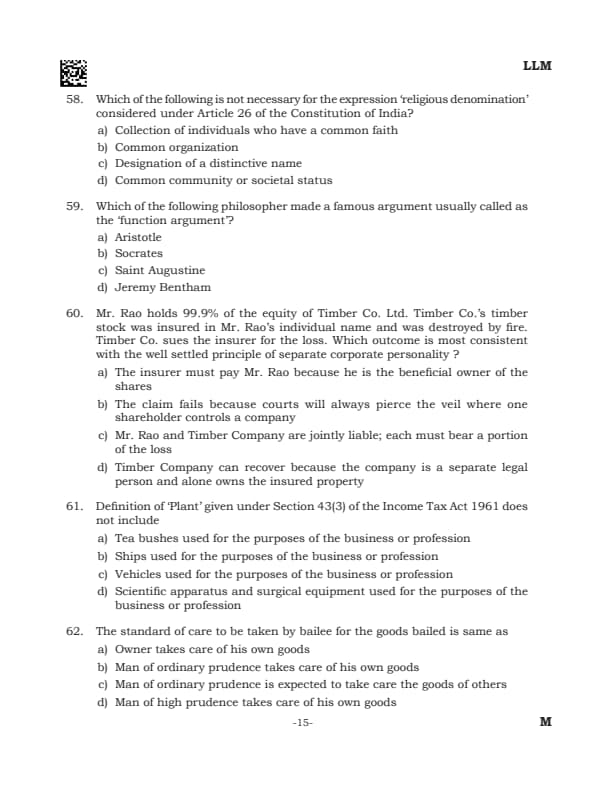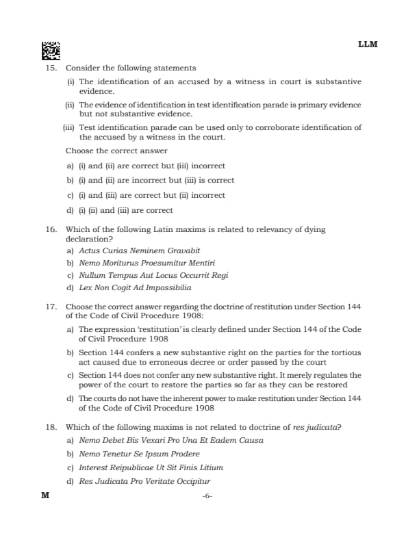 AILET 2026 LLM Question Paper with Answer Key PDFs – Memory Based