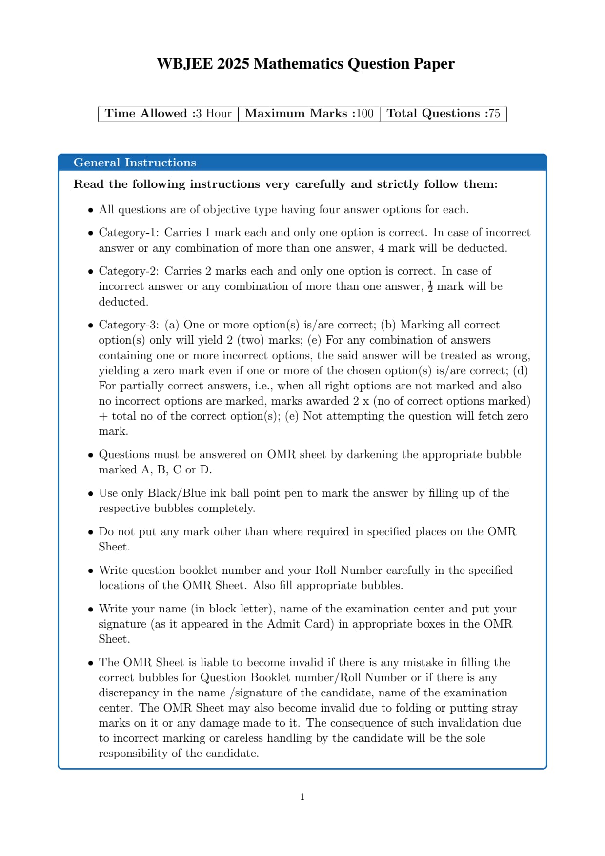 | WBJEE 2025 Mathematics Question Paper with Solution PDF | Download PDF | Check Solutions |