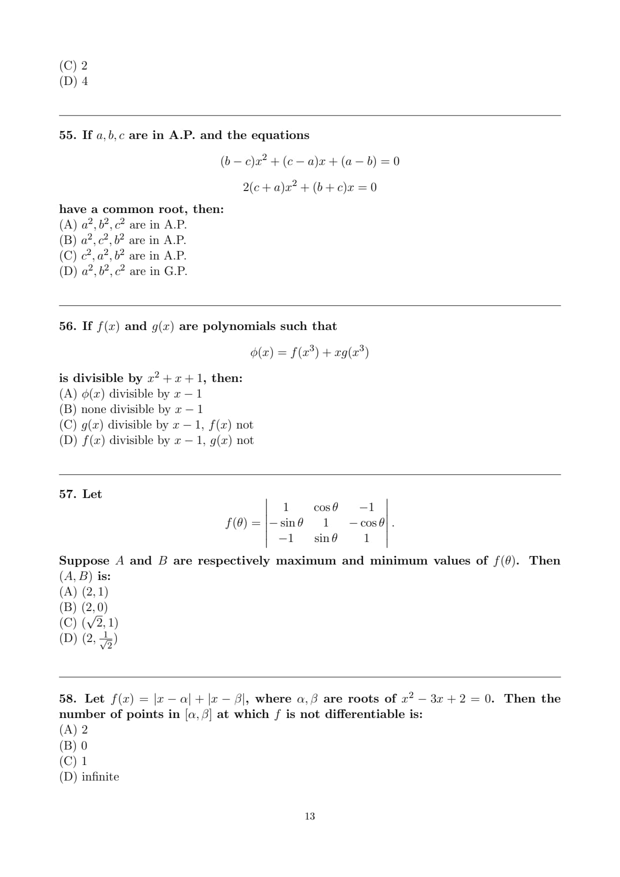So root exists when: \[ p \in [-3,-2] \] Quick Tip: For trig-substituted quadratics: Replace with bounded variable. Check interval constraints.