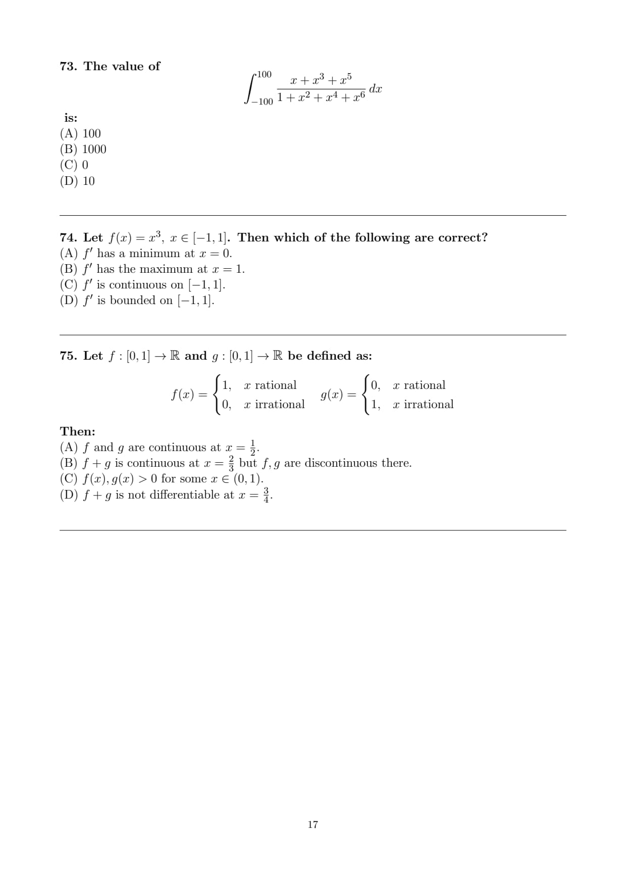 0, & x irrational \end{cases} \quad g(x)= \begin{cases} 0, & x rational