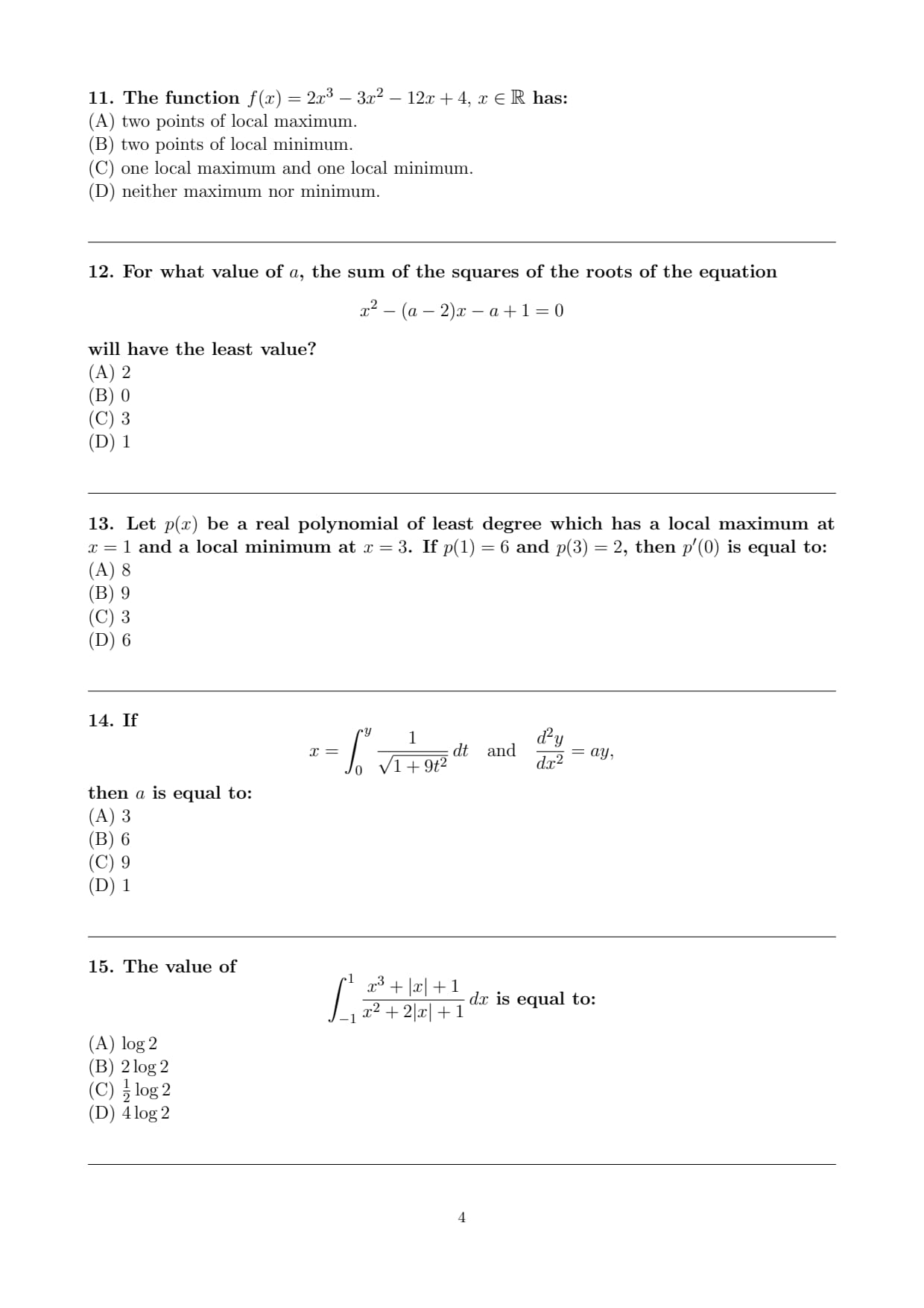 Integral of odd function over symmetric limits: \[ [-a,a] \Rightarrow 0 \] Quick Tip: Always check parity: Odd / symmetric limits ⇒ zero.