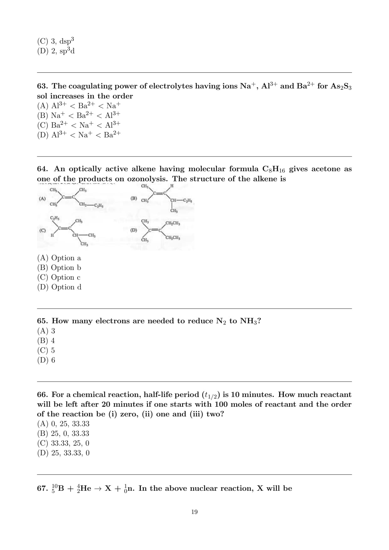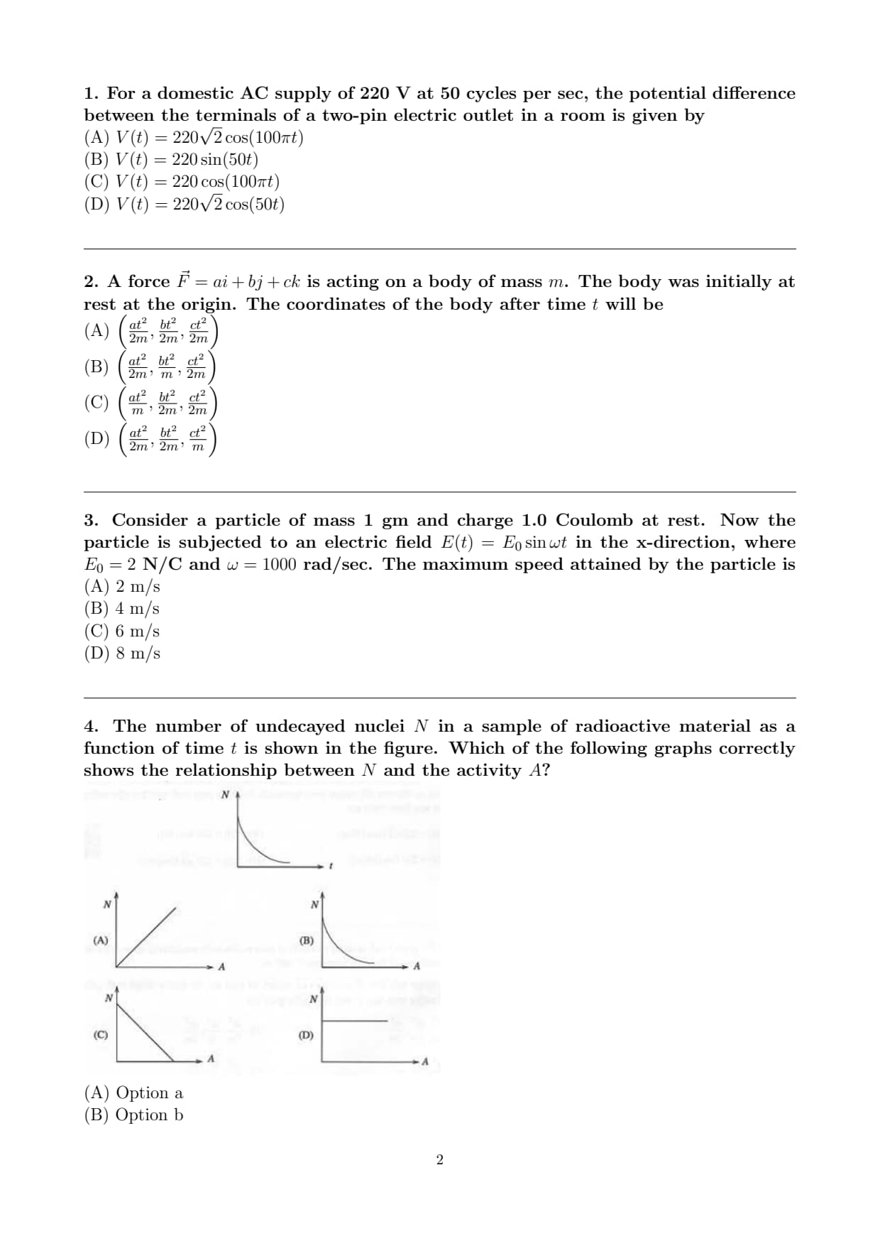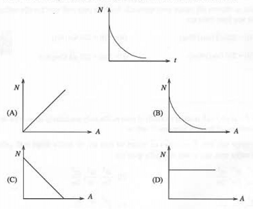 Correct graph: (C). Quick Tip: Radioactivity: \( A=\lambda N \) Always linear relation.