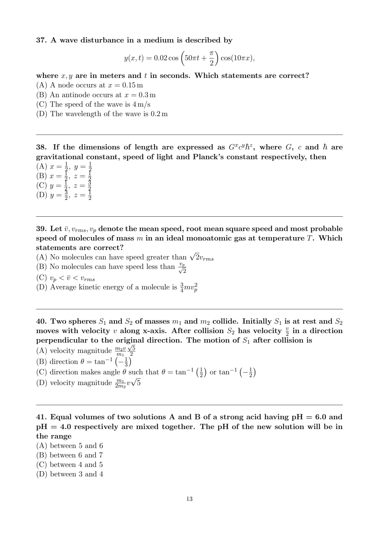 Step 3: {\color{redSubstitute values. \[ v_{\max}=\frac{2\times2000}{1000}=4 m/s \] Quick Tip: For sinusoidal force: Integrate acceleration. Max velocity when cosine = -1.