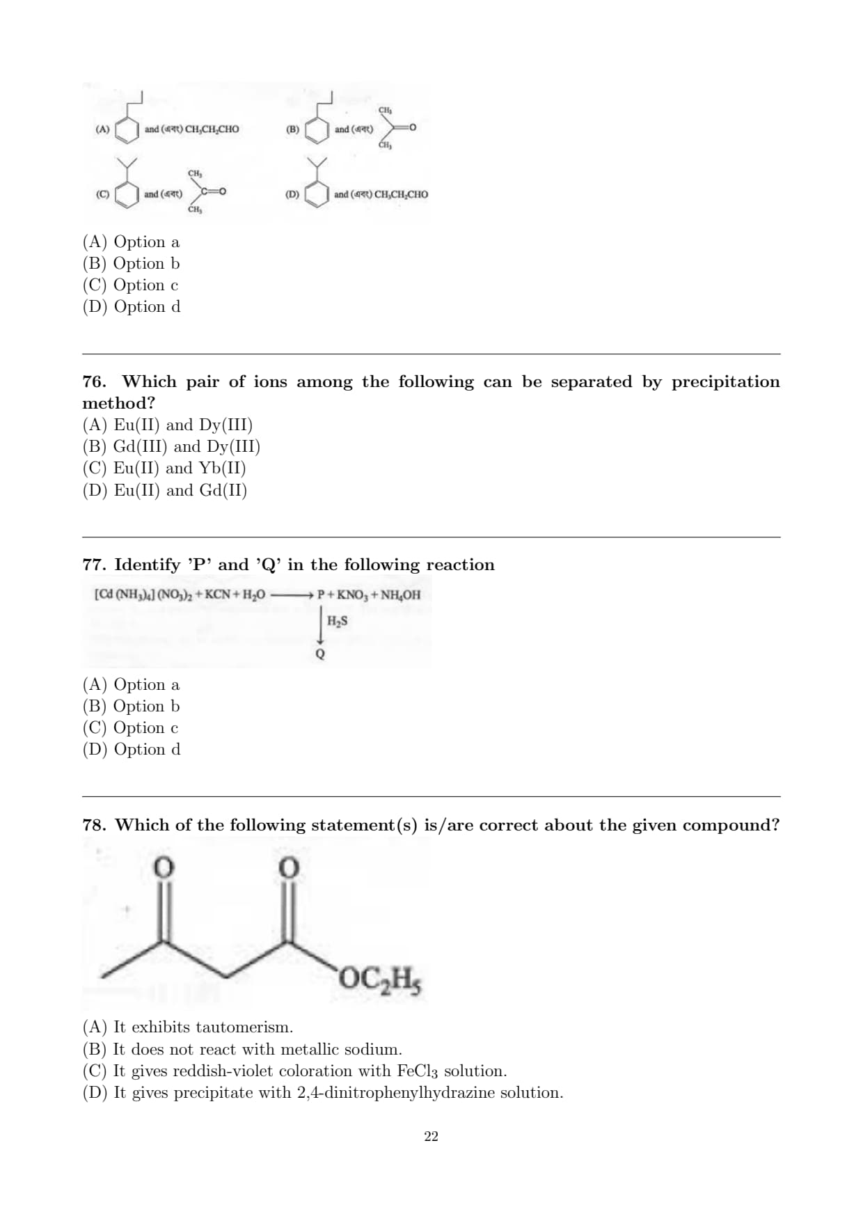 Correct statements: A, C, D. Quick Tip: \(\beta\)-keto ester properties: Keto–enol tautomerism Active methylene acidity Positive FeCl\(_3\) (enol form) Positive 2,4-DNP (carbonyl present)