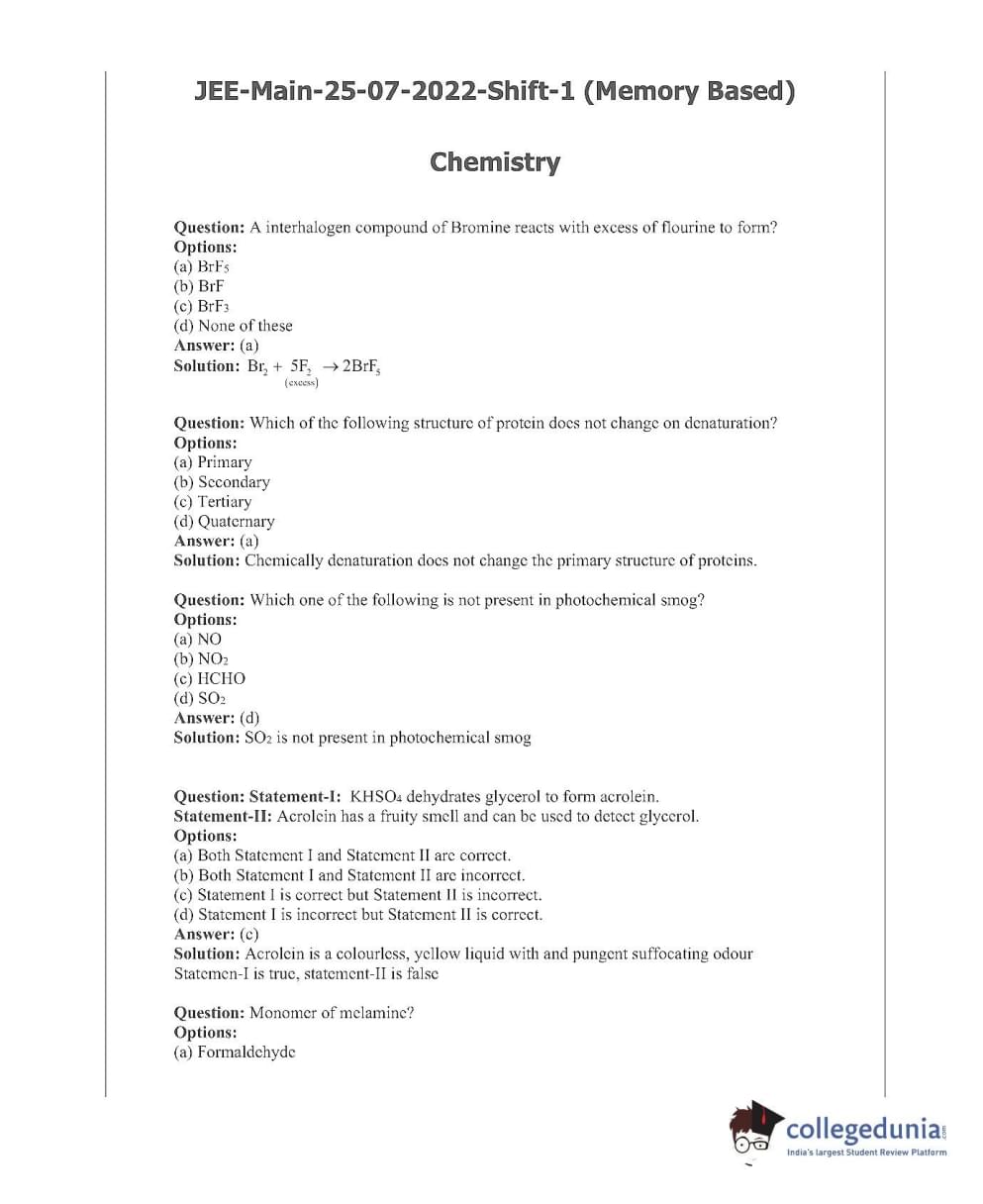 JEE Main 2022 Phase 2 Question Paper with Solution PDF