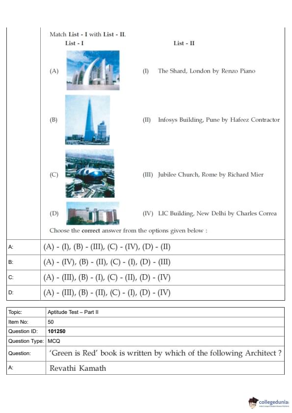 JEE Main 2022 B.Arch Question Paper with Solution PDF (July 30- Shift 1)