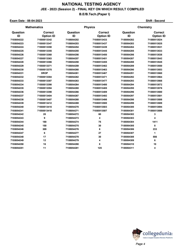 JEE Main 8 April 2023 Shift 2 Answer Key PDF is out. Candidates can use the link provided by Collegedunia here to download NTA JEE Main 2023 Answer Key for April 8 Shift 2 exam. JEE Main 8 April 2023 Shift 2 answer key PDF mentioned below are links to the official answer key solution PDF released by NTA.