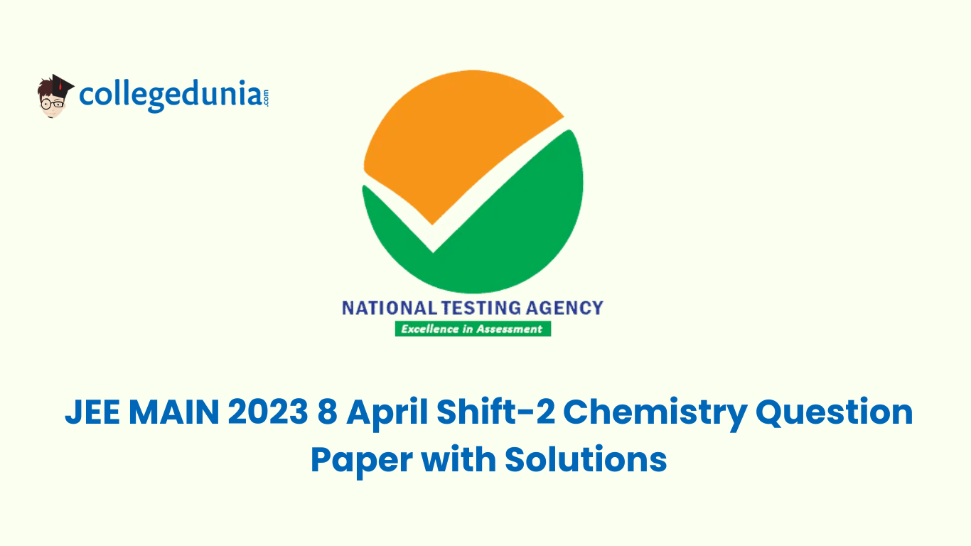 JEE Main 2023 Chemistry April 8 Shift 2 Question Paper is available here for download. Candidates can download official JEE Main 2023 Chemistry Question Paper PDF with Solution and Answer Key for April 8 Shift 2 using the link below. JEE Main Chemistry Question Paper is divided into two sections, Section A with 20 MCQs and Section B with 10 numerical type questions. Candidates are required to answer all questions from Section A and any 5 questions from section B.