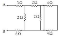 In the given circuit, the equivalent resistance between the terminal A and B is \(\_\_\_\_\) \(\Omega\).