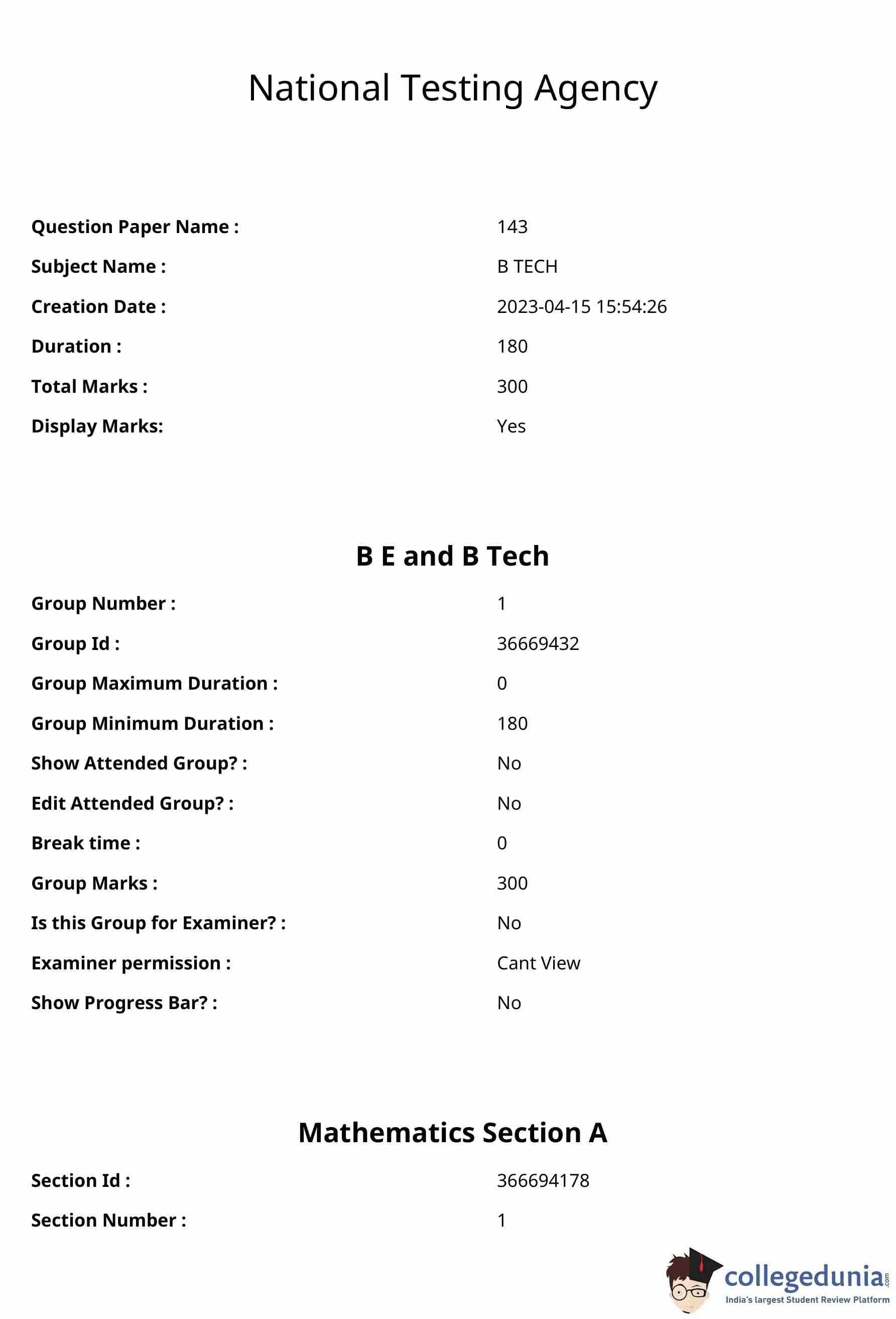 JEE Main 2023 15 April Shift 1 Question Paper is available here. NTA conducted JEE Main 2023 15 April Shift 1 from 9 AM to 12 PM. Candidates can download the official JEE Main 2023 Question Paper PDF with Solution and Answer Key for April 15 Shift 1 using the link below.