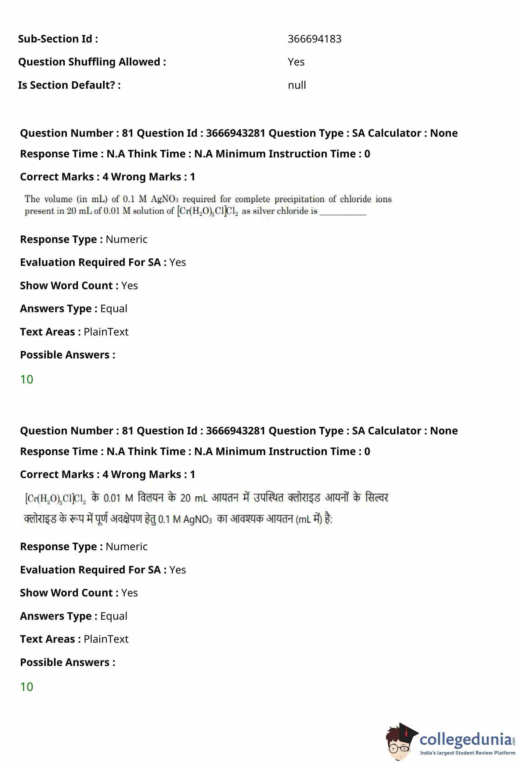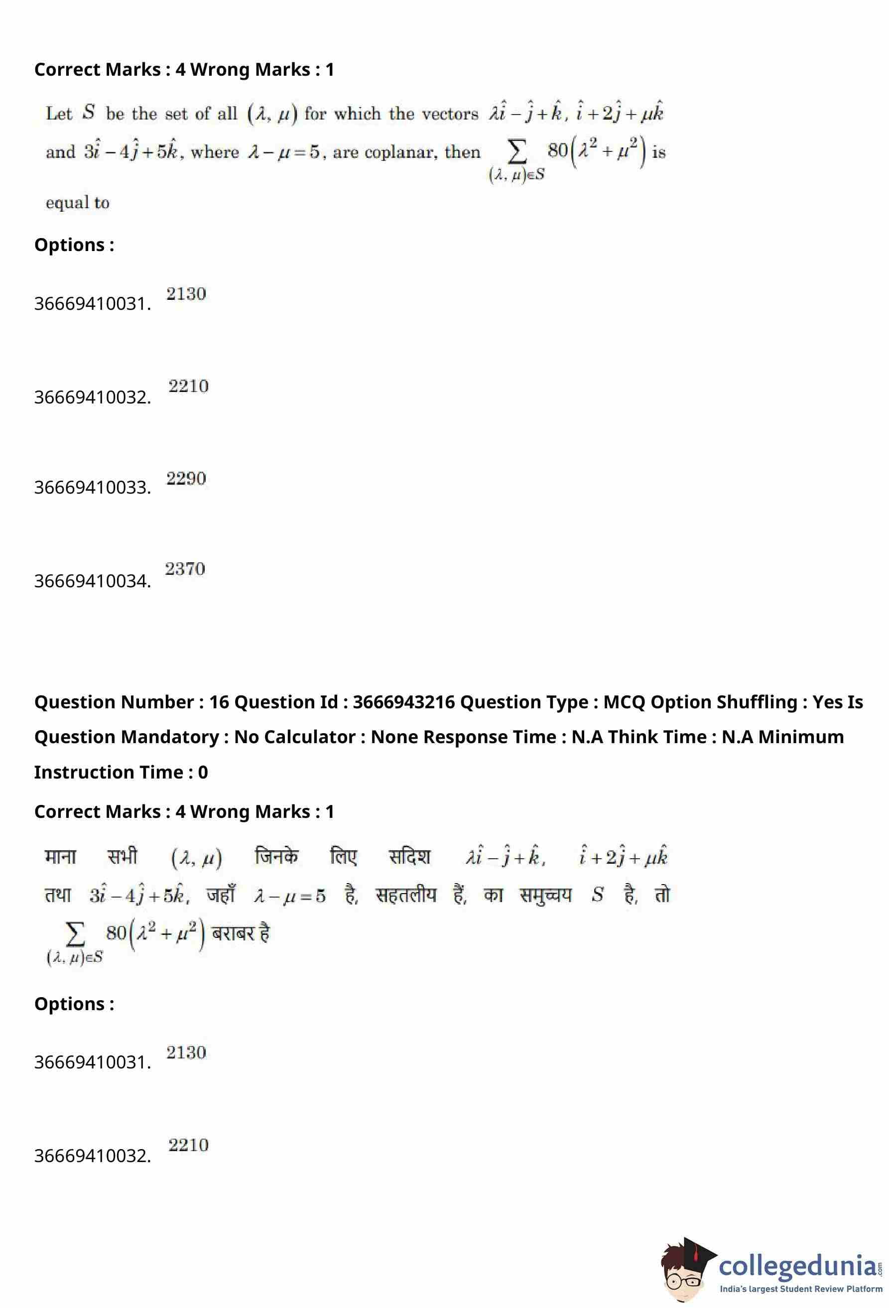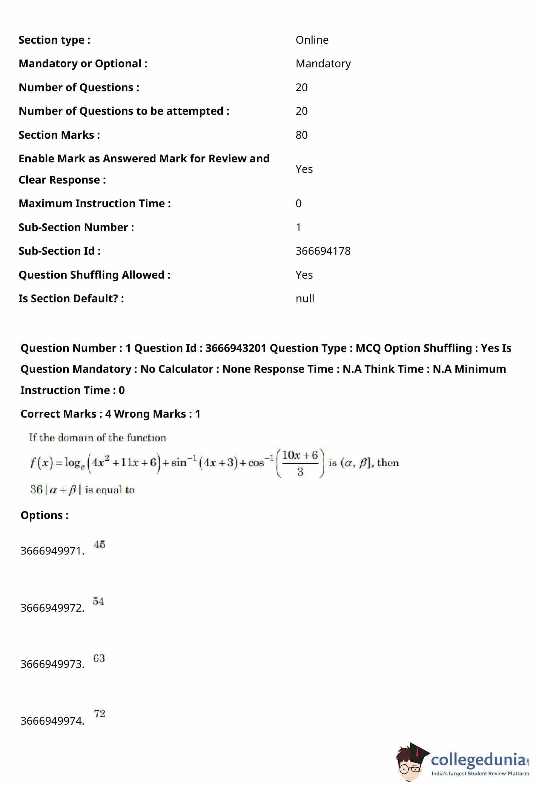 JEE Main 2023 15 April Shift 1 Question Paper with Solutions and Answer Key PDF