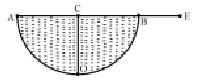 A hemispherical vessel is completely filled with a liquid of refractive index \( \mu \). A small coin is kept at the lowest point \( O \) of the vessel as shown in the figure. The minimum value of the refractive index of the liquid so that a person can see the coin from point \( E \) (at the level of the vessel) is: