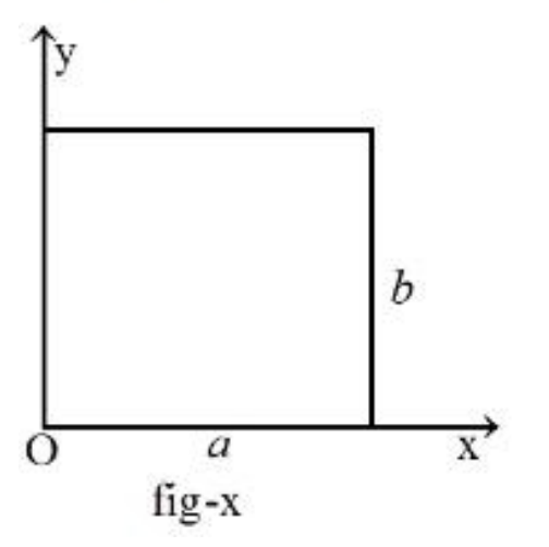 The center of mass of a thin rectangular plate (fig - x) with sides of length \( a \) and \( b \), whose mass per unit area (\( \sigma \)) varies as \( \sigma = \sigma_0 \frac{x}{ab} \) (where \( \sigma_0 \) is a constant), would be