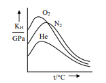 Which of the following graph correctly represents the plots of \(K_H\) at 1 bar gases in water versus temperature?