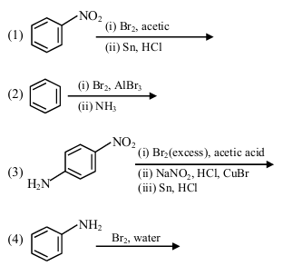 The sequence from the following that would result in giving predominantly 3, 4, 5 -Tribromoaniline is :