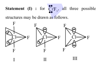 Statement (II): Structure III is most stable, as the orbitals having the lone pairs are axial, where the \( \ell p - \beta p \) repulsion is minimum.
