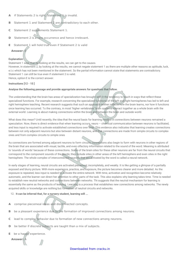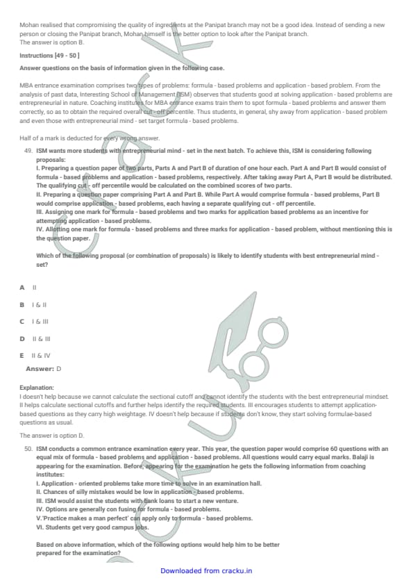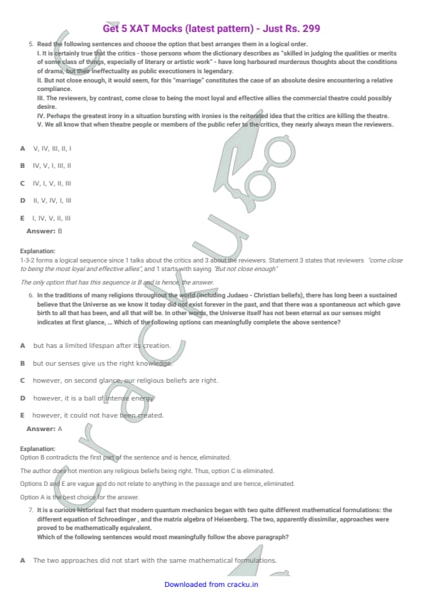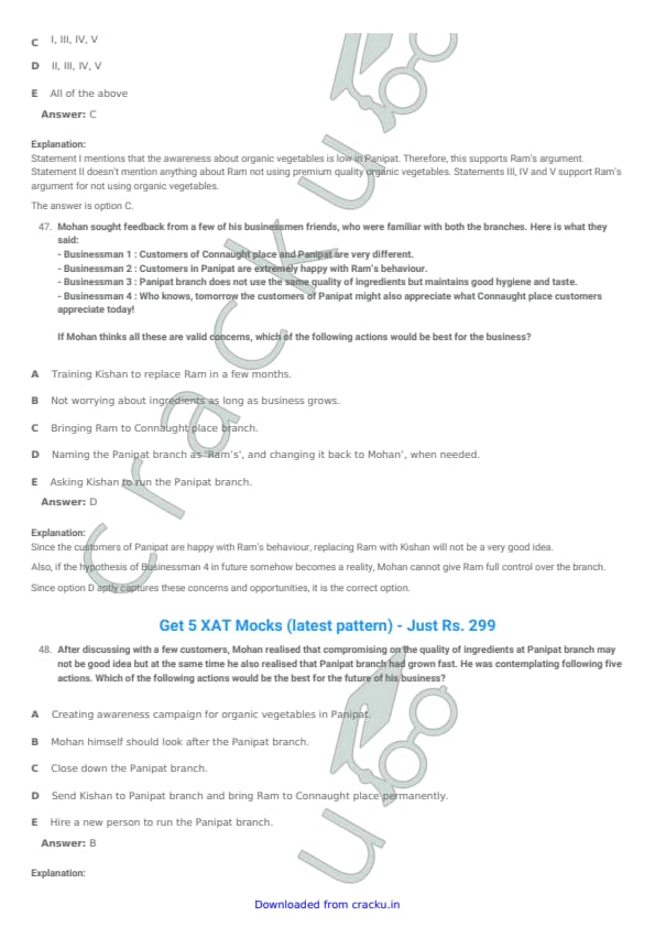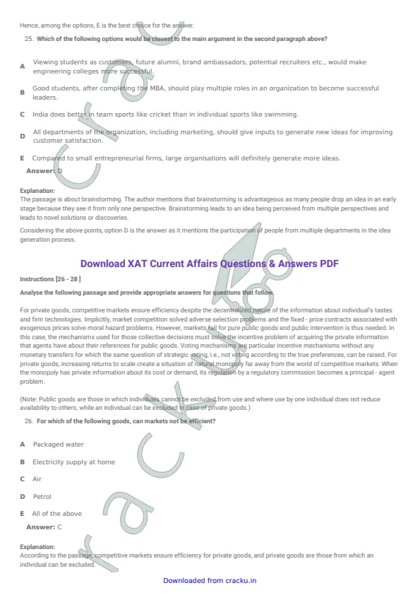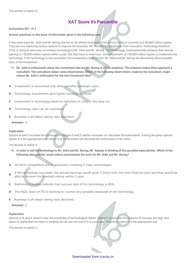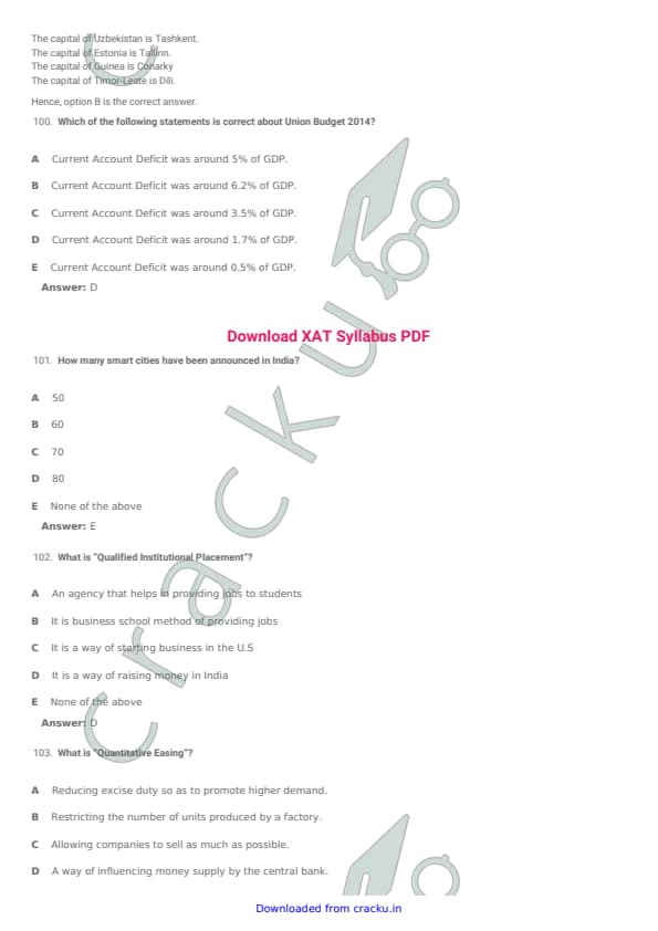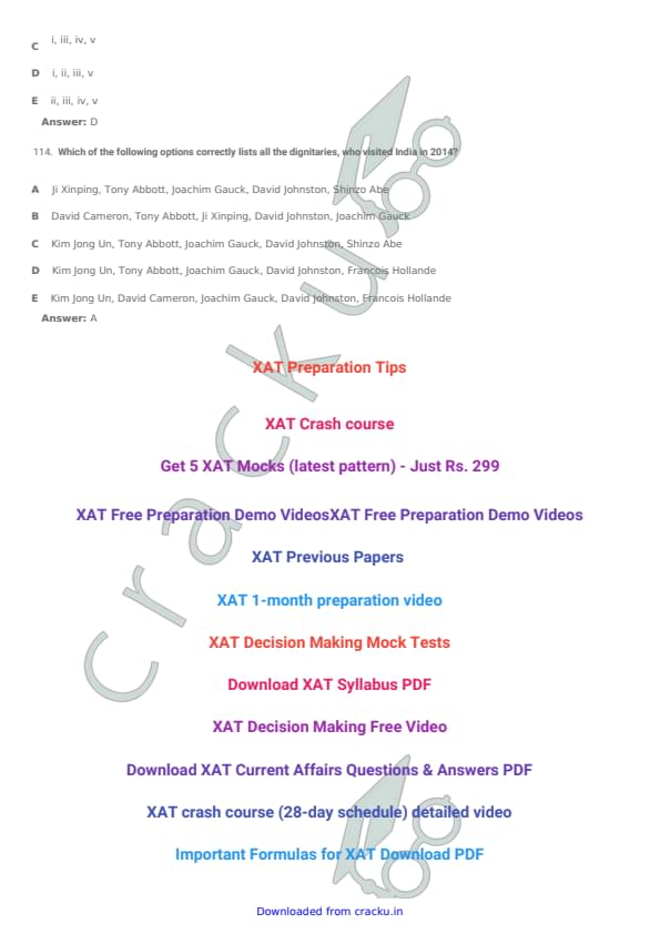 XAT 2015 Question paper with answer key pdf conducted on January 4, 2015 is available for download. The exam was successfully organized by XLRI Jamshedpur. The question paper comprised a total of 114 questions divided among four sections. (PDF Source: cracku.in)