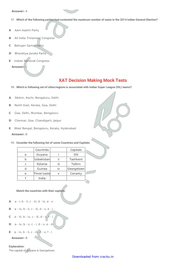 XAT 2015 Question Paper with Answer Key PDFs