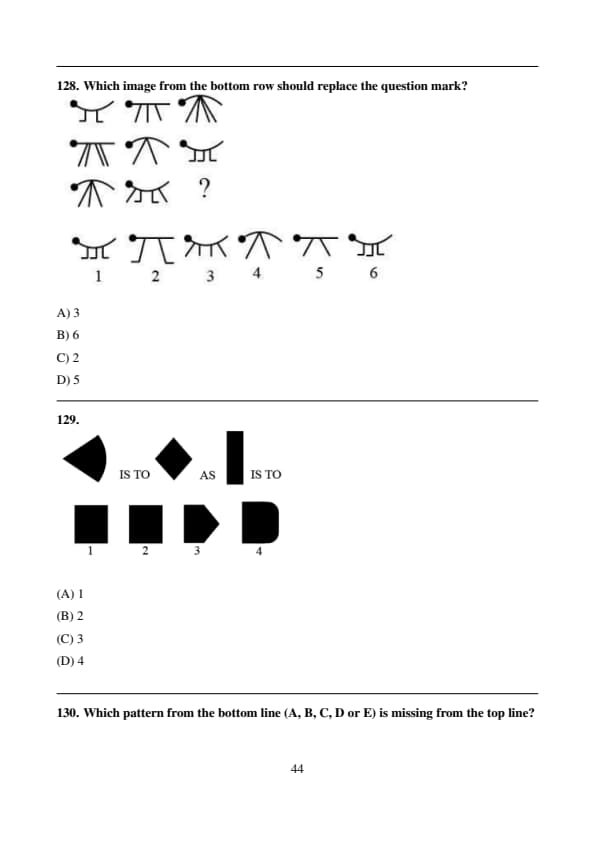 Which pattern from the bottom line (A, B, C, D or E) is missing from the top line?
