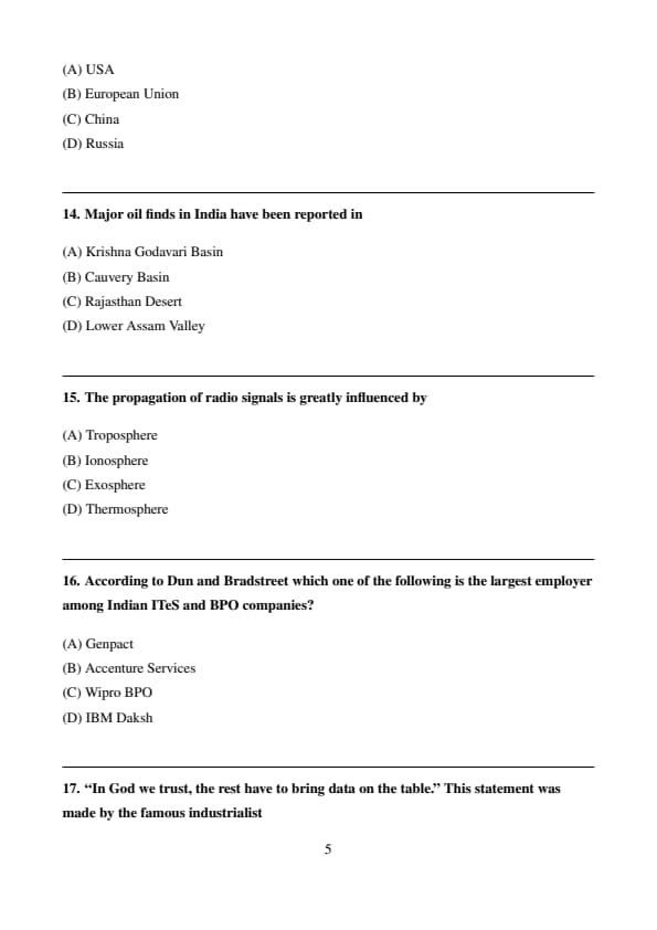 - A) 5
