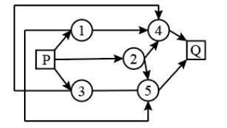 What is the number of routes from \(P\) to \(Q\) in the network shown?