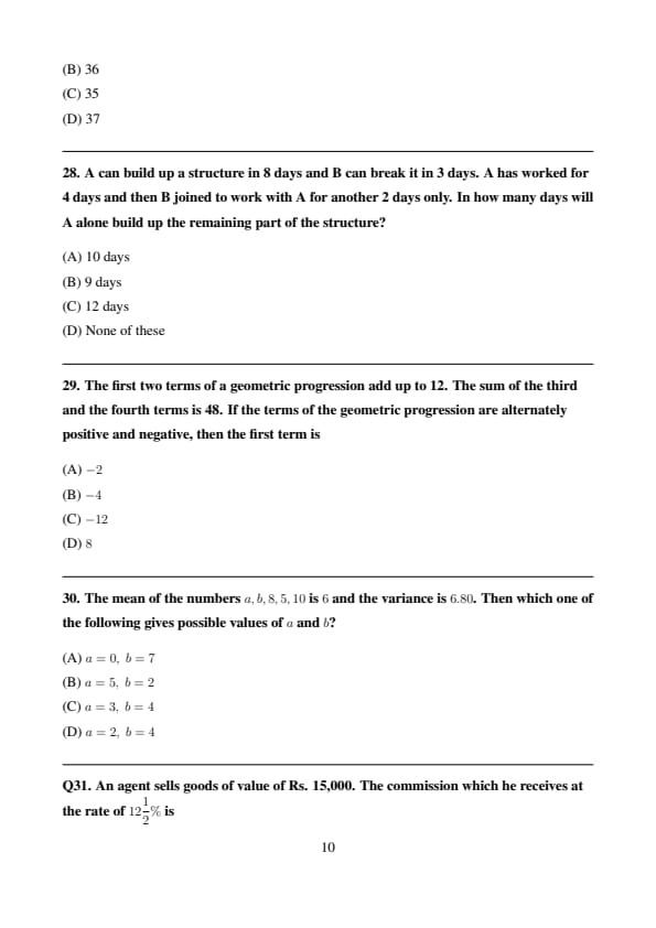 The first two terms of a geometric progression add up to 12. The sum of the third and the fourth terms is 48. If the terms of the geometric progression are alternately positive and negative, then the first term is