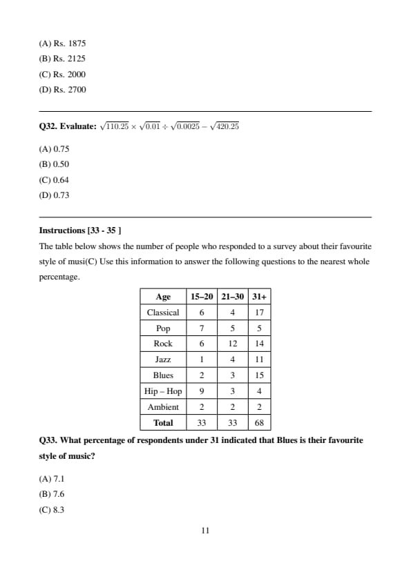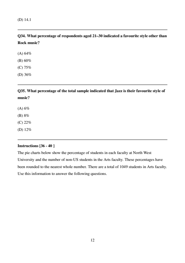 The table below shows the number of people who responded to a survey about their favourite style of musi(C) Use this information to answer the following questions to the nearest whole percentage.